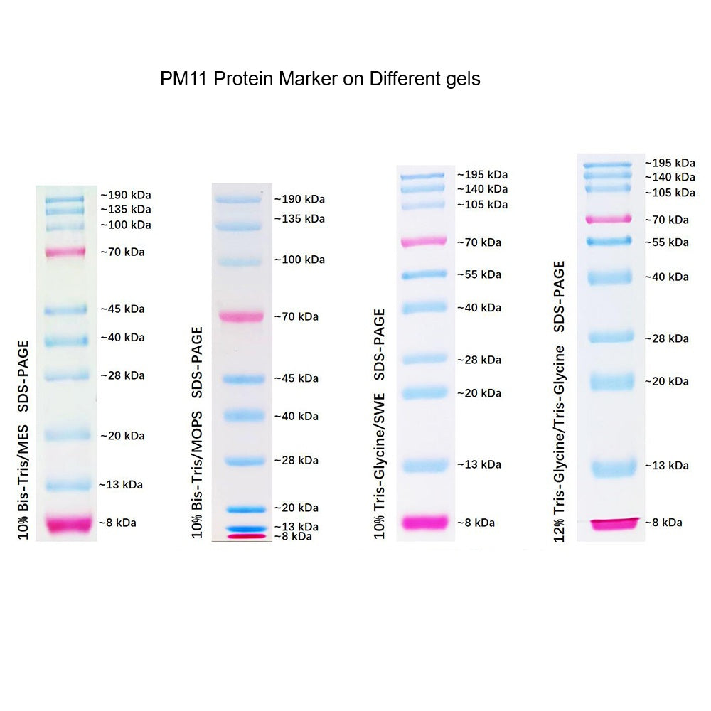 Dual Color Prestained Protein Maker III consists of 11 highly purified and pre-stained recombinant proteins. The indicated molecular weight range... Read more