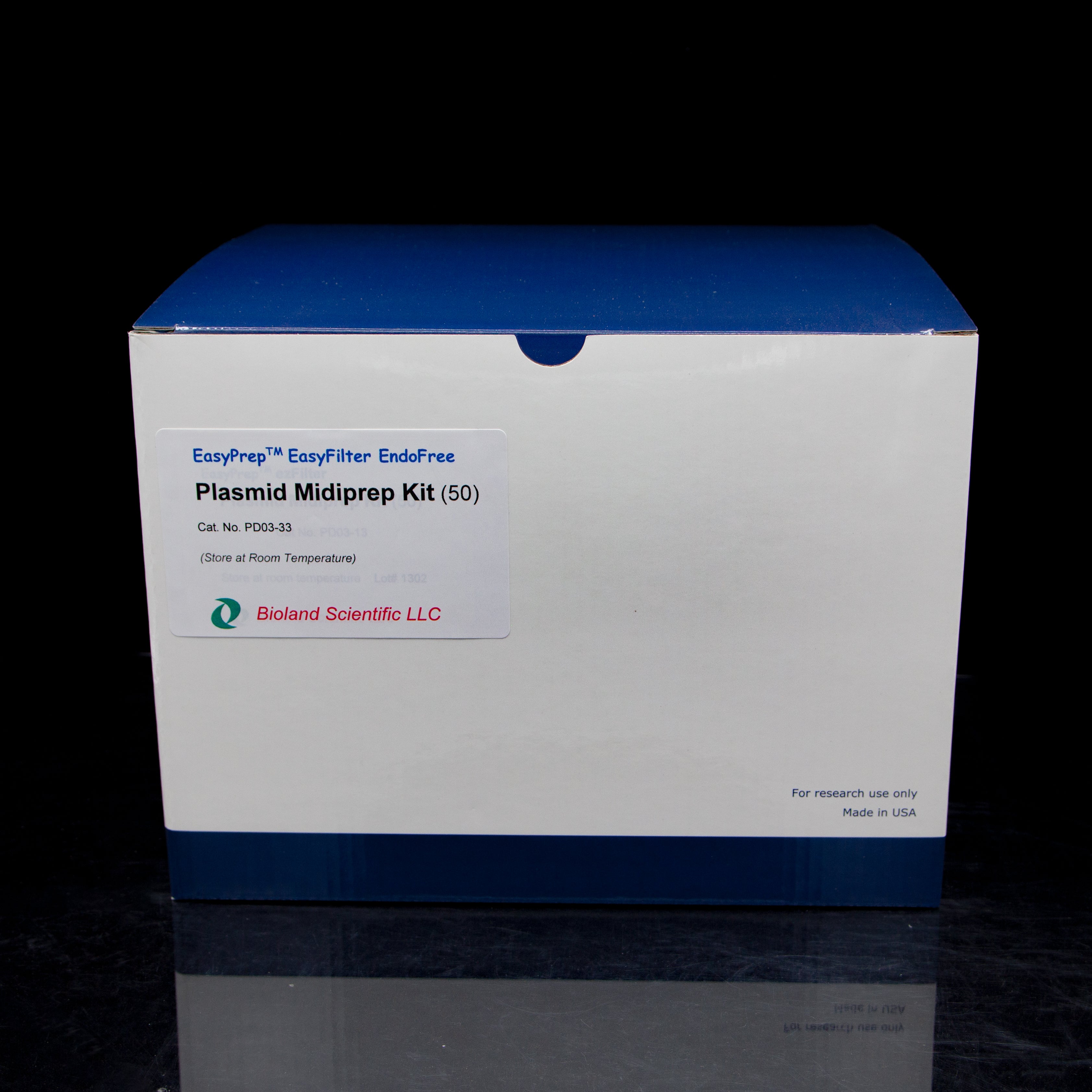 EasyPrep™ EndoFree Plasmid Midiprep Kit provides a simple, fast and cost effective method to purify plasmid DNAs from bacterial culture, when amount of the plasmid DNA needed is about 200 µg. The kit is especially convenient to use when multiple plasmids need to be purified at the same time, as the use of traditional commercial kits is time-consuming.