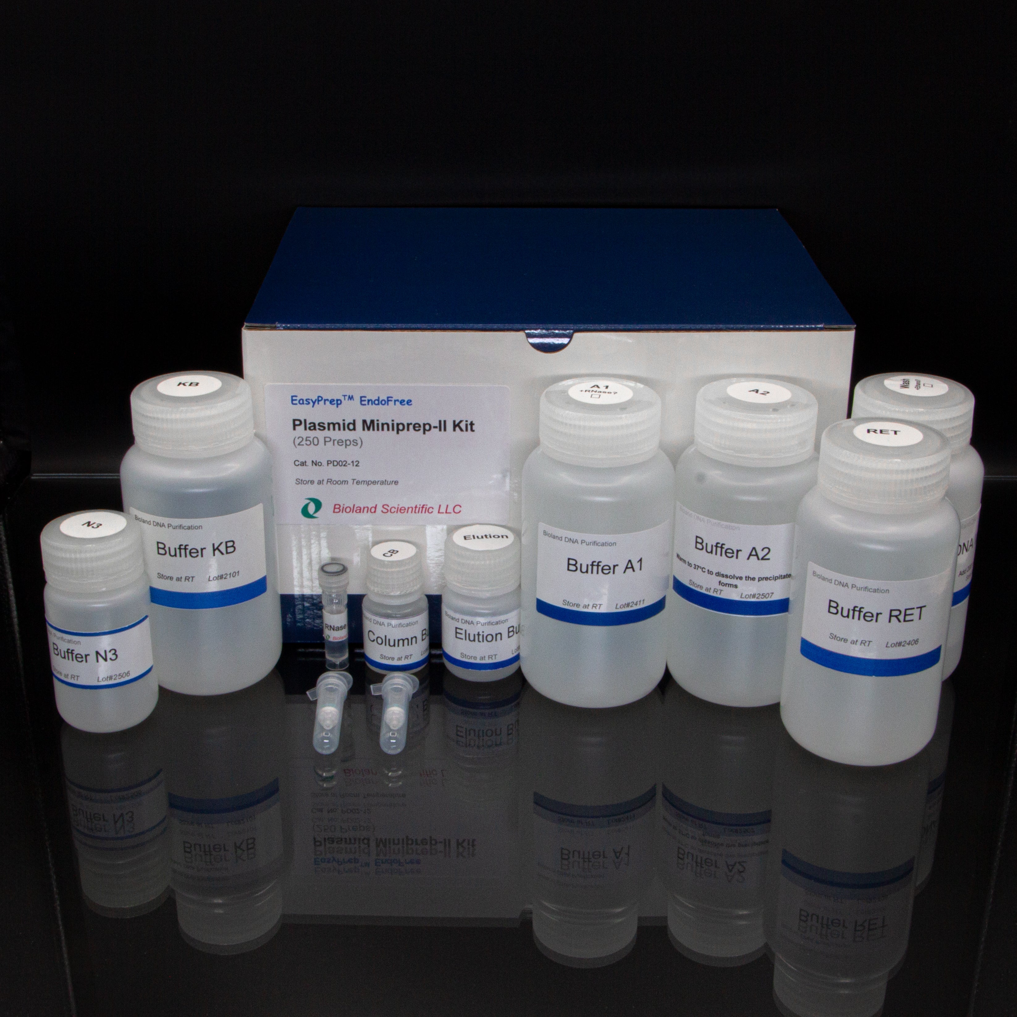 Plasmid isolated with traditional protocol normally contains high level of endotoxins (lipopolysaccharides or LPS). For transfection of endotoxin sensitive cell lines or microinjection, the endotoxins should be removed before the applications. The EasyPrep™ endofree system uses a specially formulated buffer that extracts the endotoxin from the plasmid DNA. Two rounds of extraction will reduce the endotoxin level to 0.1 EU (Endotoxin) per µg of plasmid DNA. The endofree plasmid miniprep kit provides an efficient endotoxin removal step into the traditional purification procedure to produce transfection grade plasmid DNA.